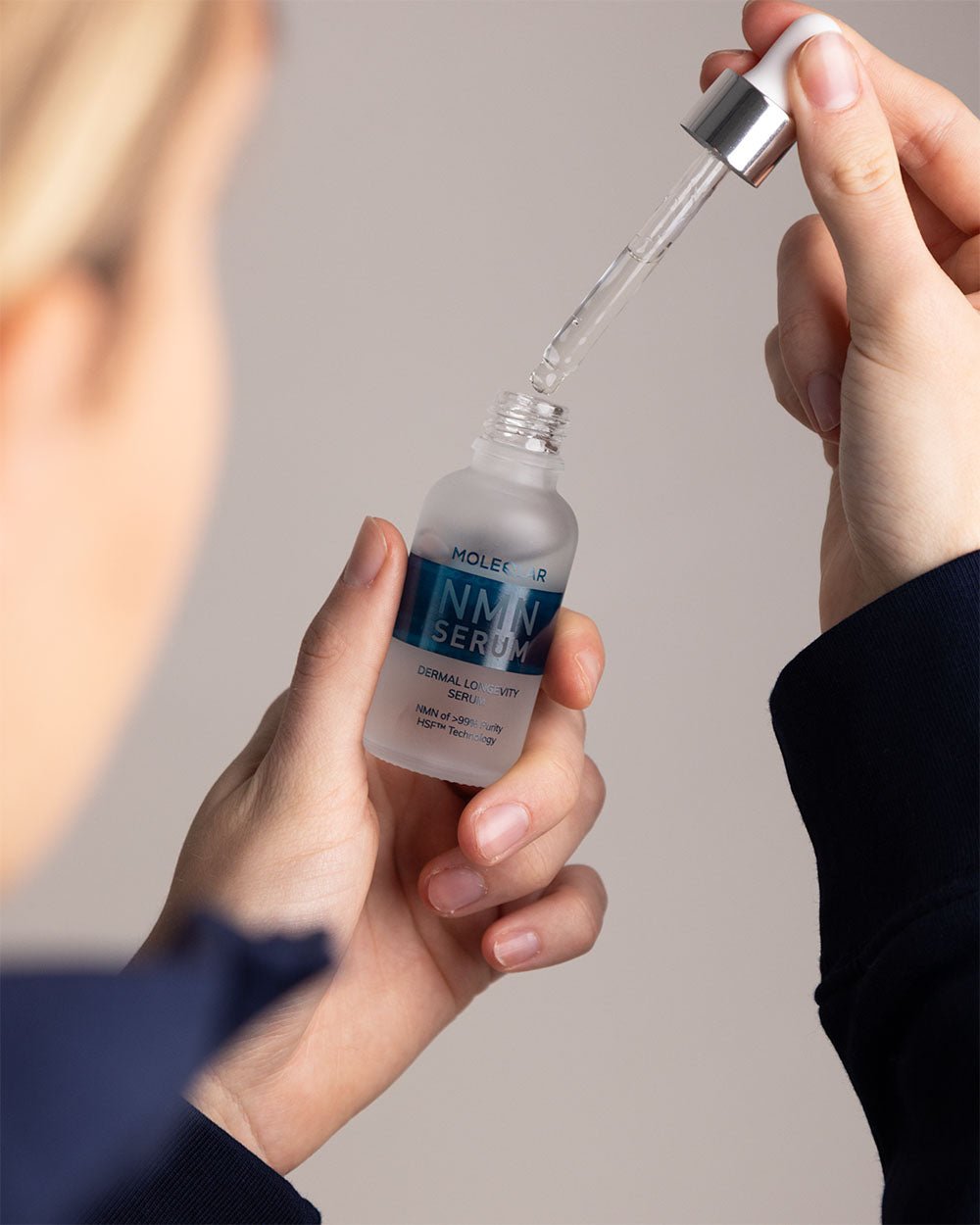 "Das NMN-Serum mit seiner speziellen Formel ist das ideale Anti-Aging-Produkt für eine sichtbar jüngere Haut, da es den NAD+ Spiegel der Hautzelle auf innovative Weise direkt unterstützt. Aus Longevity-Perspektive ist NAD+ besonders interessant, da es der Zellalterung entgegenwirkt."