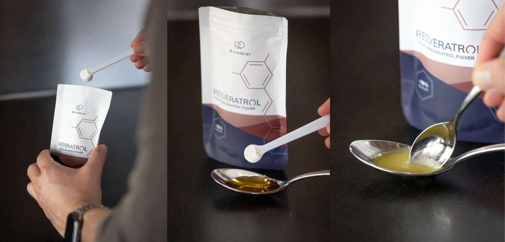 La biodisponibilité du resvératrol en poudre peut être considérablement augmentée en mélangeant la poudre avec une cuillère d'huile.