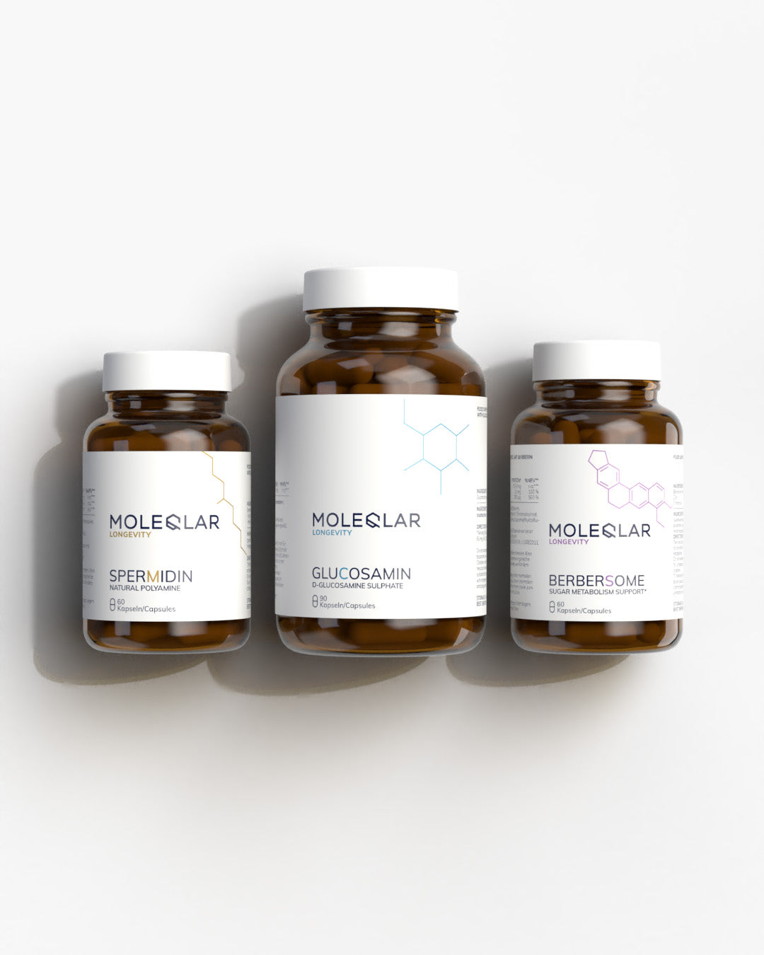 Der unvergleichbar formulierte Berberin-Mineral Komplex trifft in diesem Bundle auf glutenfreies Spermidin aus Sojabohnenextrakt und auf Glucosamin aus verantwortungsvoller, tierfreier Herstellung.