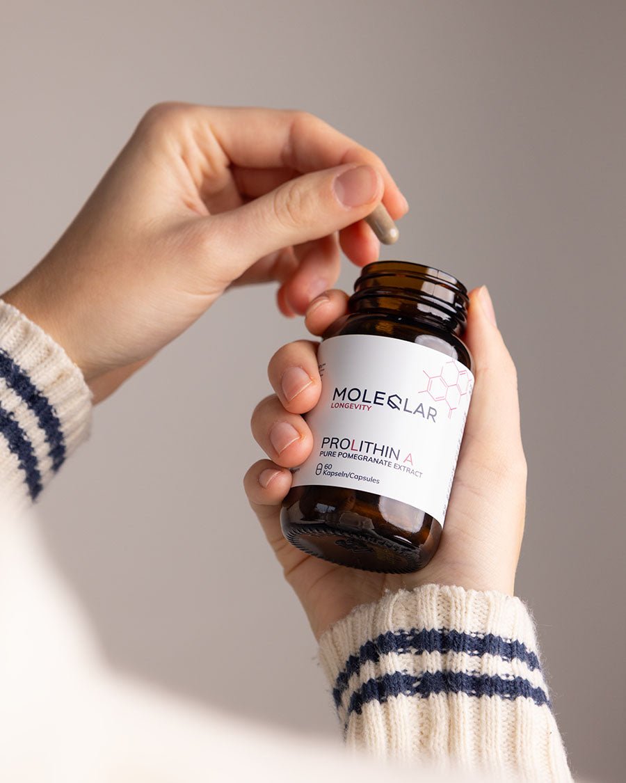 ProLithin A® ist ein pflanzlicher Polyphenol-Komplex mit Granatapfelextrakt (40 % Ellagsäure), Inulin und MCT-Öl, formuliert als vegane Kapsel. Die Ellagsäure dient als natürliche Vorstufe von Urolithin A.